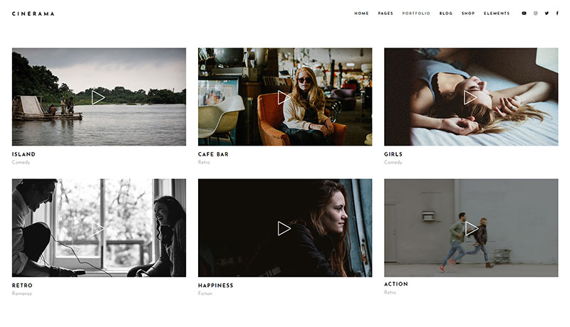 Show off your projects with Cinerama’s remarkable collection of portfolio lists. They are sure to catch everyone’s eye, as they come with several hover types, including text sliding, overlay, video preview & shader.